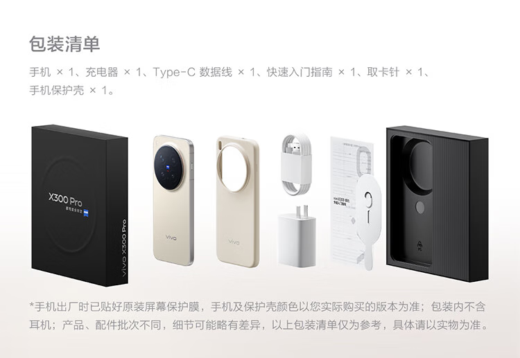 手机(内含电池)×1,充电头×1,数据线×1,保护壳x1,取卡针×1,快速入门指南×1,出厂已贴原装高清膜x1